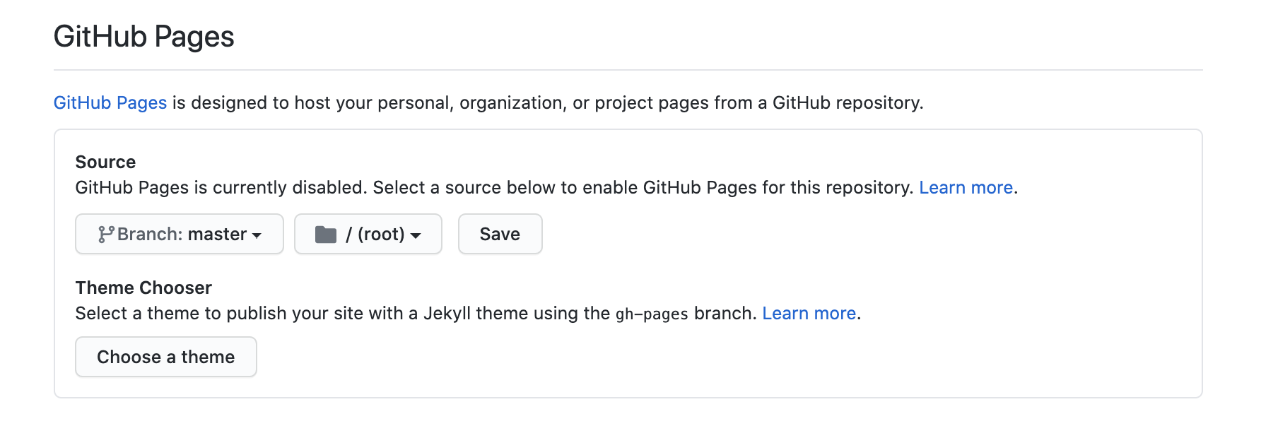 as source and then your site will be avallable at https://[YOUR_USERNAME].github.io/[YOUR_REPOSITORY_NAME]/