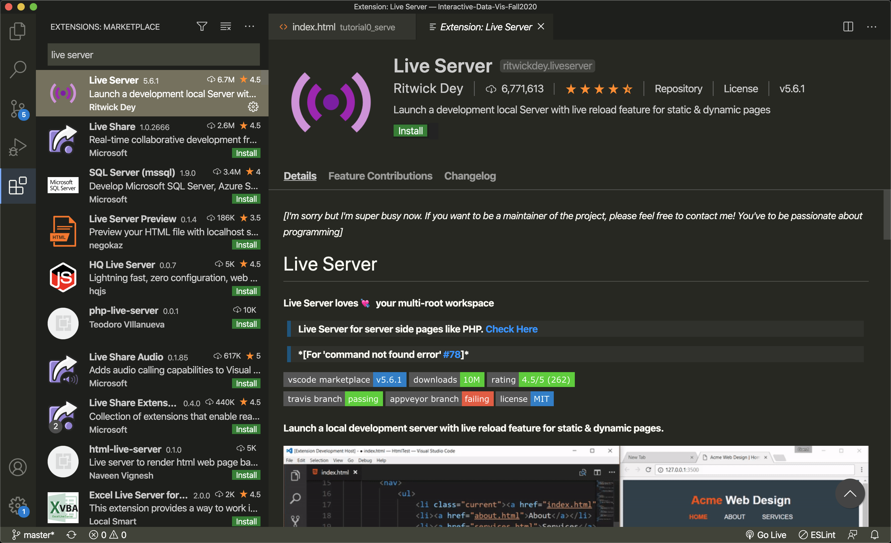 In the search bar, search for “Live Serve”. Click the green “install” button.