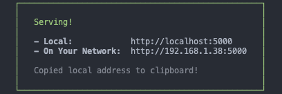 Your files will now be available if you go to the following address in your browser http://localhost:5000